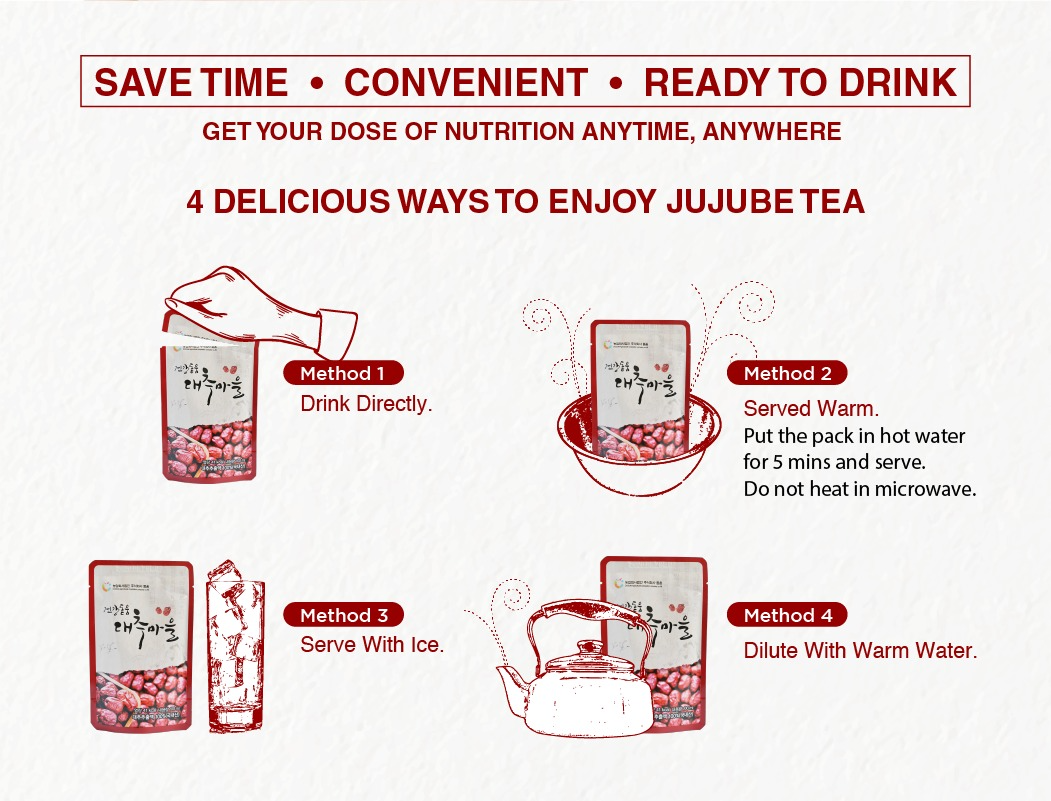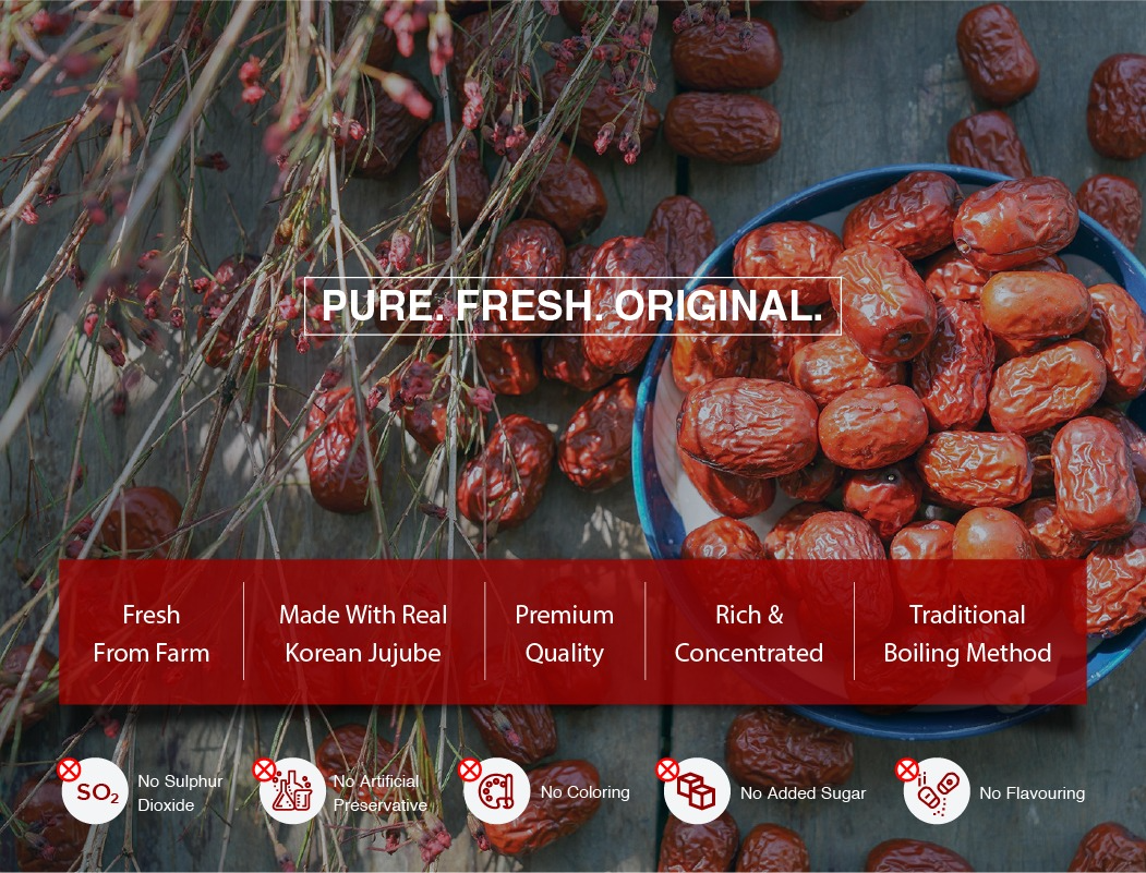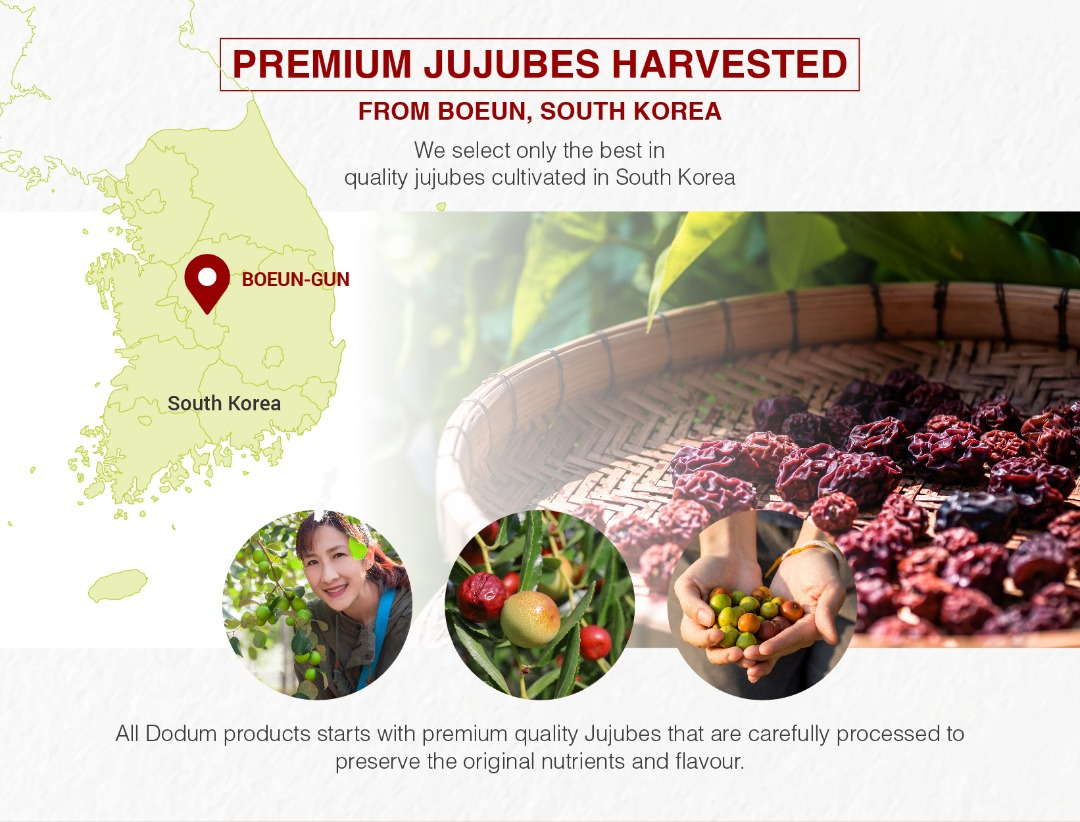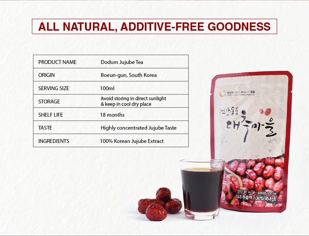 ORIGIN: Bo-eun, South Korea (Only using red dates farmed and harvested fresh from their own farm in the Boeun-gun that is famous for its high-quality red dates and pollution-free environment)